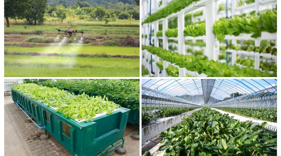 परिशुद्ध खेती, हाइड्रोपोनिक्स, एरोपोनिक्स और वर्टिकल खेती आधुनिक खेती के कुछ उदाहरण हैं जो किसानों के बीच काफी लोकप्रियता हासिल कर रहे है।