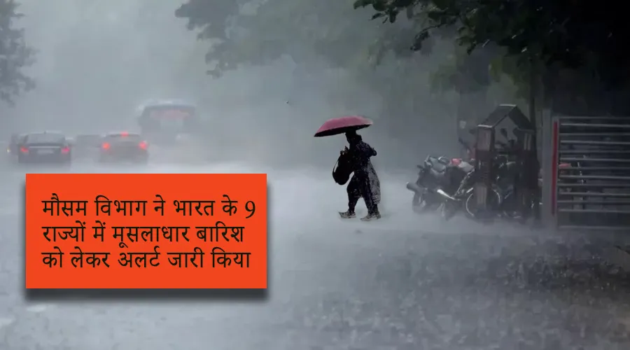 मौसम विभाग ने भारत के 9 राज्यों में मूसलाधार बारिश को लेकर अलर्ट जारी किया